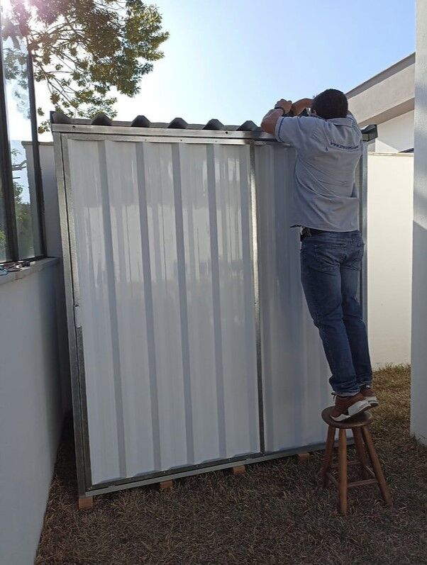 Prático e Móvel nosso depósito é pronto para uso, é feito em aço galvanizado, pintado com tinta eletrostática e temos em diversas cores. Dispensa construções de alvenaria.